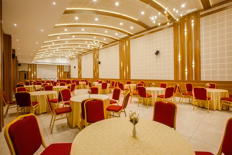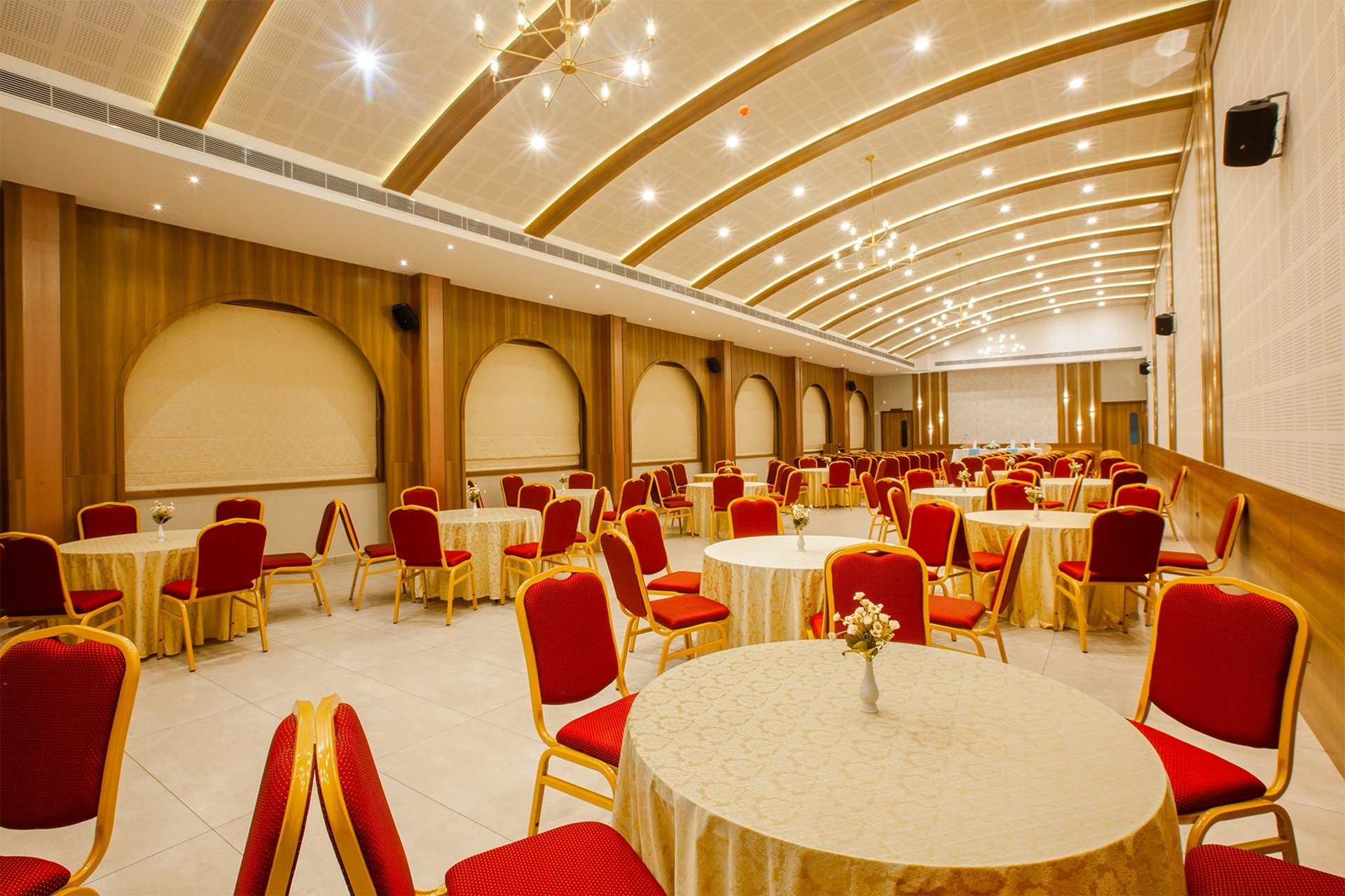 Well-appointed Mini Hall designed for intimate gatherings, “Royal Inn” is perfect to host small meetings, workshops and private celebrations. Equipped with modern audiovisual facilities and flexible seating arrangements, it provides a comfortable and professional atmosphere for events up to medium capacity. Whereas “Royal Palace” the Banquet Hall majestic in space and décor, sets the stage for grand celebrations. Whether it’s a wedding, reception, social event or corporate conference, this hall offers a spacious environment, elegant interiors, and state-of-the-art amenities to ensure that every event unfolds flawlessly.