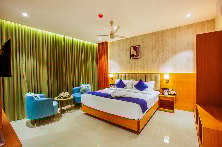 Our accommodation brings together style, comfort and functionality. With well-furnished interiors, enticing décor and contemporary amenities, each room category caters to the unique needs of families, couples, business guests and solo travellers. Experience restful sleep, complete privacy and warm hospitality throughout your stay at our room categories which include Suite, Deluxe and Standard Rooms. They all have been thoughtfully designed to assure you in for a relaxing and refreshing sleep.
